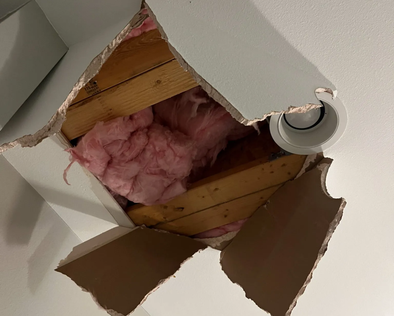 It’s the sound every homeowner dreads: a sudden crunch from above. My client, JD, found himself staring at a gaping hole in his bathroom ceiling after an AC technician took an accidental “misstep” in the attic. This wasn’t just a small crack; it was a full structural breakthrough that required more than just a little bit of spackle.