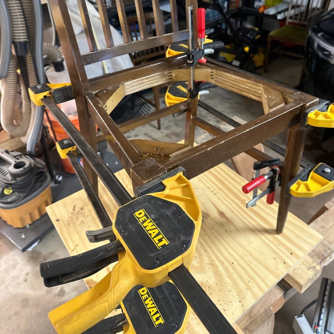 - The “Solid” Test: Using a suite of deep-reach clamps and wood-to-wood bonding, these chairs went from “wobbly” to “rock solid.”