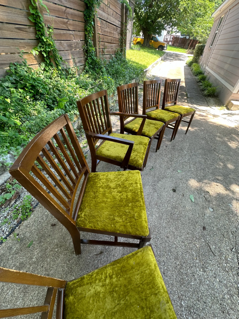 Sometimes, the best restoration is the one you can’t see. These chairs are now back with their owners in the DFW area, ready for another generation of family dinners. They still have their vintage soul and those striking green velvet seats, but now they have the strength to match.